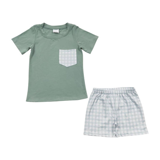 Green Plaid Pockets Short Set